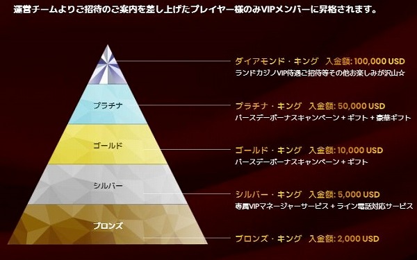 ダイアモンドランクなら、ランドカジノの招待もありますよ。