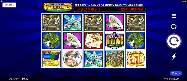 「Major Millions Progressive」は、シンプルなジャックポット搭載スロットです。