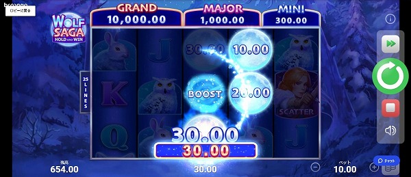 満月図柄が出現するとチャンスです。「BOOST」という文字が書かれていれば、満月図柄に書いてある数字を加算した金額が払い出しされます。