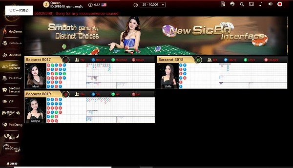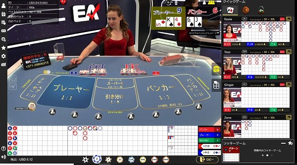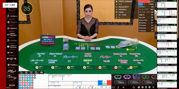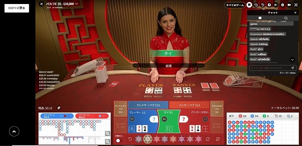 「バカラ」「ボーナスバカラ」の2種類のライブバカラが存在します。