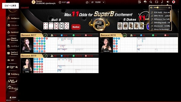 こちらのライブカジノはBGMとして、日本の曲を選べます。