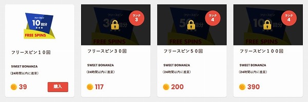 貯めると様々な景品やフリースピン、キャッシュなどに交換可能です。