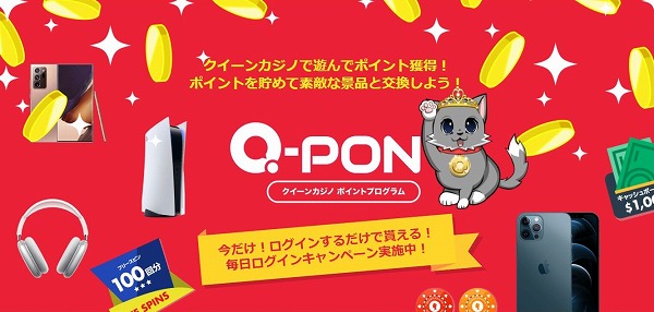 はい。ではコインカジノで様々な特典が貰えるQ-PONについて説明しますね。