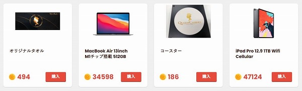 Q-PONを貯めると、景品、フリースピン、入金ボーナス、キャッシュなどに交換が可能です。