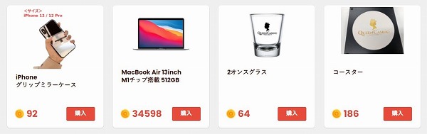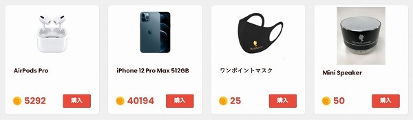 最も安価な景品はワンポイントマスクですね。登録した時点で10ポイントあるので入金して何機種かプレイすれば、すぐに貯まるでしょう。