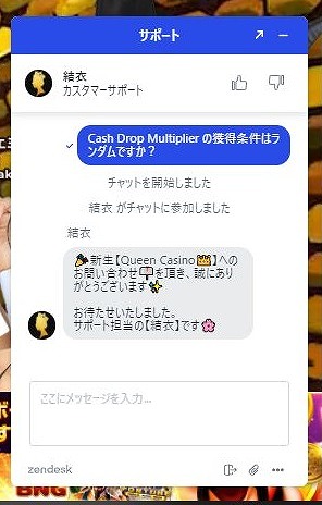 質問を入力して待つとサポートから反応があり、その後に質問の回答を得られます。