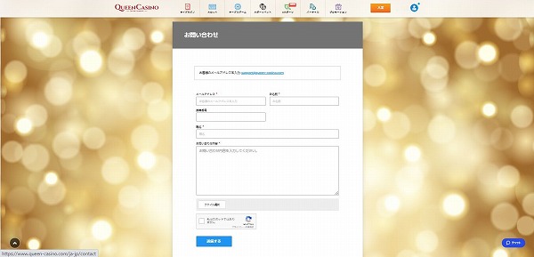 「私はロボットではありません」にチェックを入れて「送信する」を押すと質問がコインカジノのサポートメールのsupport@queen-casino.com宛てに送信されます。