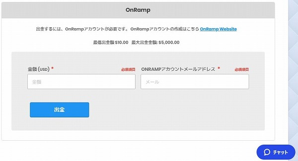 | ONRAMP | 10ドル | 5,000ドル | 50ドル以上は無料(50ドル未満は5ドル) |