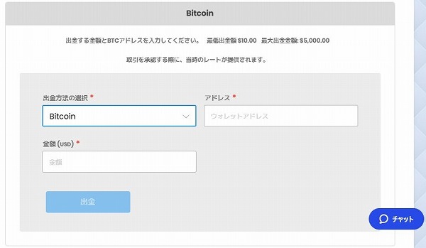 | 出金方法 | 最低出金額 | 最大出金額 | 手数料 |