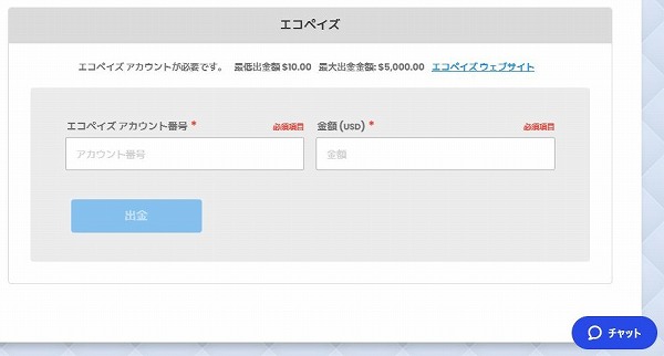 | EcoPayz | 10ドル | 5,000ドル | 50ドル以上は無料(50ドル未満は5ドル) |